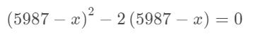 Testa att sätta y = 5987 - x, alltså att du gör en variabelsubstitution. Då får du en enklare ekvation att lösa. En ledtråd om att detta kan vara en bra metod är att uttrycket 5987 - x förekommer i båda termerna, och att det påminner om en typisk andragradsekvation. Sedan substituterar du tillbaka i slutet för att få vad x blir.
