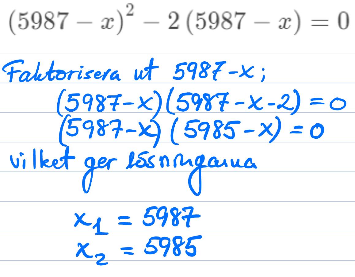 Jag förstår inte ens hur man ska börja. Kan man flytta över -2(5987-x) så att man får