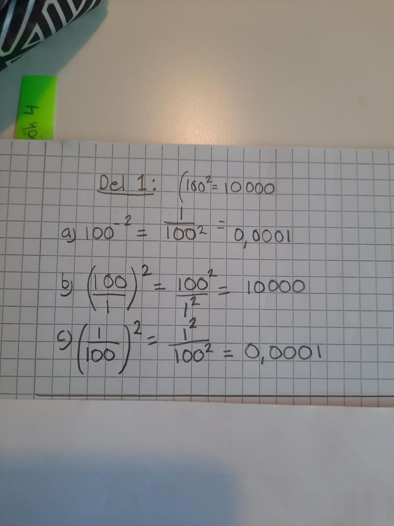 "100^2 har ju värdet 10 000. Beräkna värdet om man