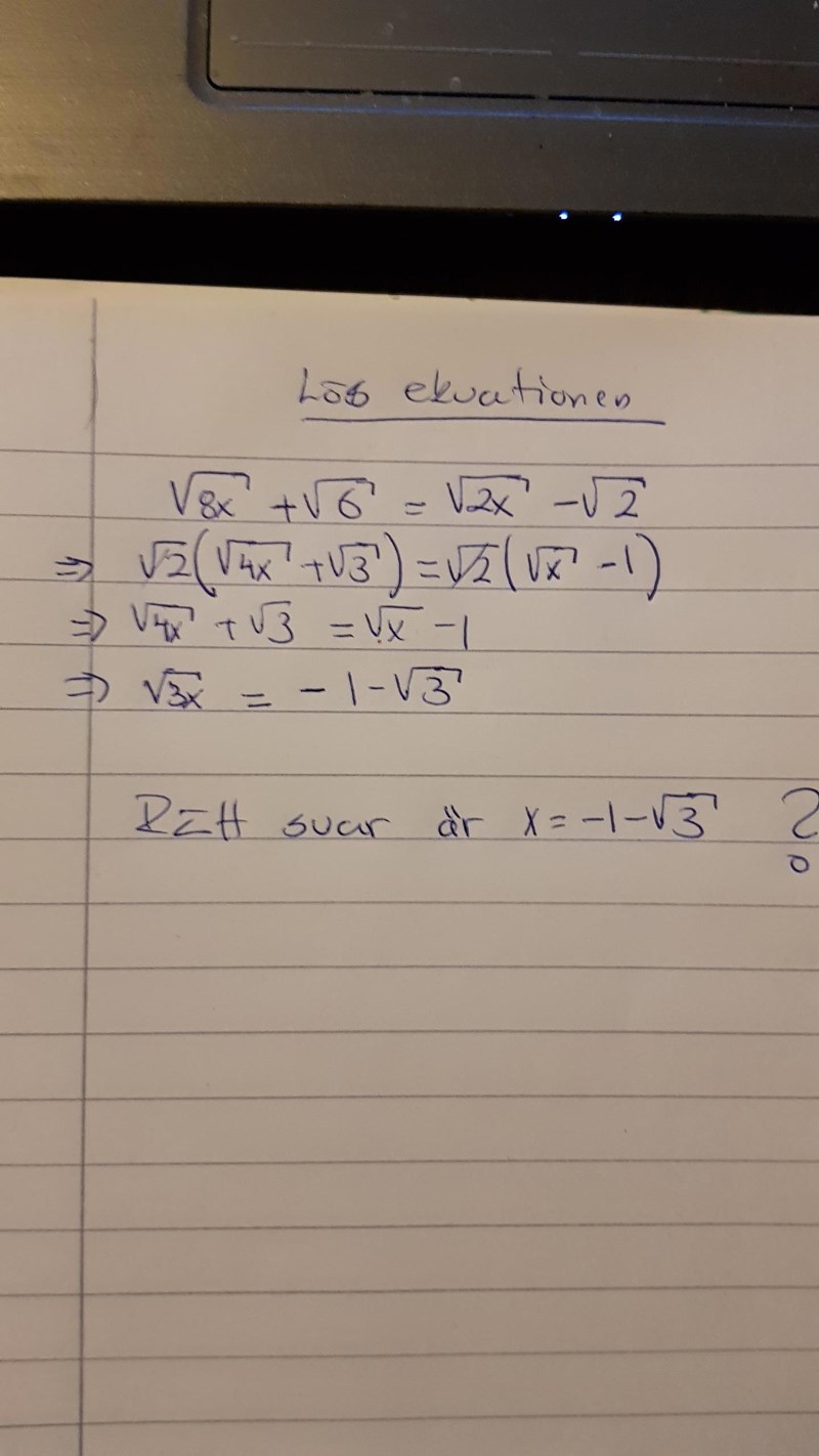 Obs! Glöm inte att kontrollera lösningarna då denna metod kan ge falska rötter.