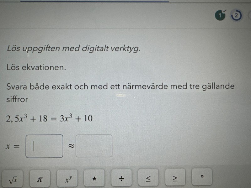 men jag vet inte hur man ska svara, jag förstår inte saken med ”gällande siffror, vår lärare har inte gått igenom det och jag antar att man ska skriva tredje roten ur 16 i första rutan men vet ej hur man gör de på datorn