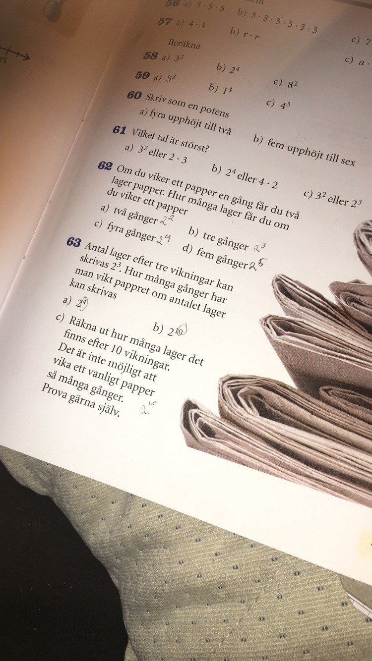 Plocka fram ett papper och testa själv! vik det dubbelt så får du två lager. Vik det dubbelt igen, så blir det 4 lager. Fortsätt tills det blir för tjockt! Hur många dubbelvikningar klarar du?