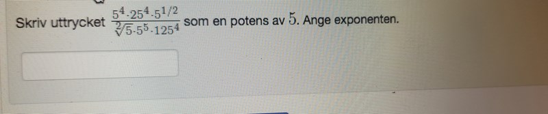 Om jag stryker alla femmor i täljaren och nämnaren får jag väl ; 54· 25 4 / 5 5·125 4 sen om jag ska skriva ut det så enkelt som möjligt får jag väl ; 54·58/55·512 = 5-5 Tack