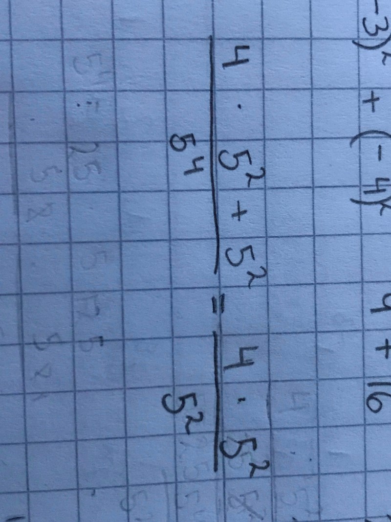 Nej, när du delar 4·52+524\cdot 5^2 + 5^2 med 525^2 så blir det 4 + 1.
