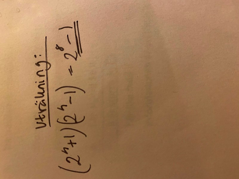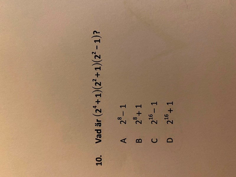 finns säkert något simpelt man kan göra för ett lösa denna uppgift som jag inte tänker på nu. Men generellt är det bara att börja multiplicera 2 av parenteserna och spara den tredje till sist. Så börja med (2^4+1)(2^2+1) och när du har en parentes av dem kan du multiplicera med (2^2-1)
