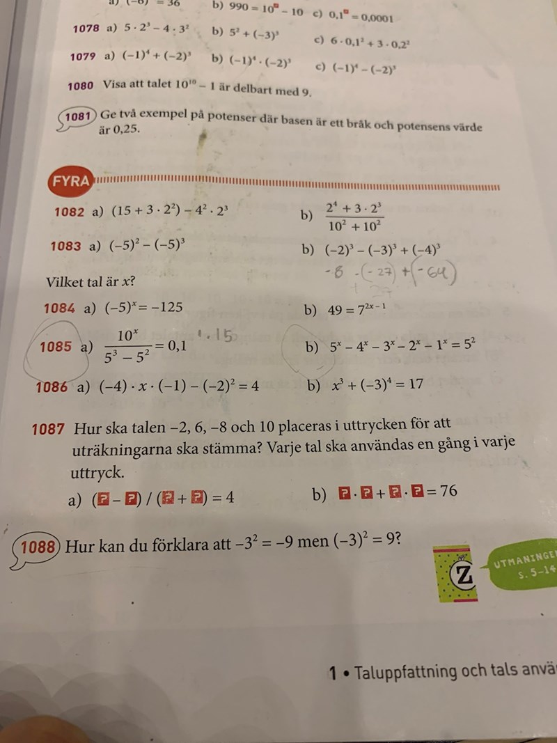 fattar inte fråga 1085 B).. undrar om det finns en specifik teknik till att räkna ut sånna ekvationer?