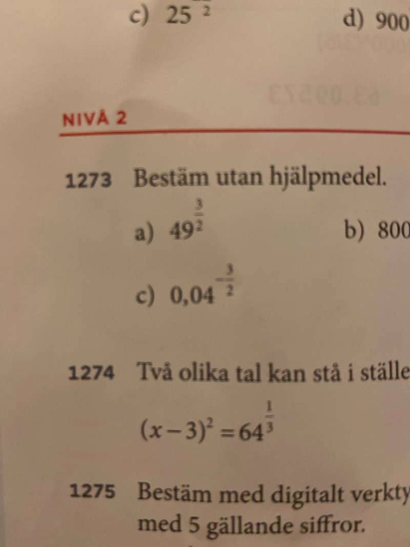 Kan någon hjälpa mig med fråga c. Jag försökte att dela upp den såhär 1/ (4•102) 2/3 men då fick jag svaret 24/3 • 104/3 = 204/3, vilket är fel då den ska vara 1/125