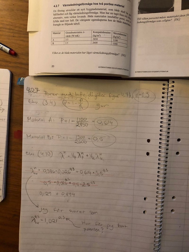 Hur får man bort potensen 0.3 från svaret? Mitt svar på material A blir .