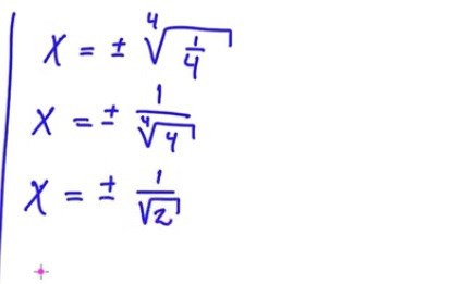 Enligt potenslagarna gäller att (ab)c=acbc, så här gäller att x=±(14)1/4=±141/4=±12.
