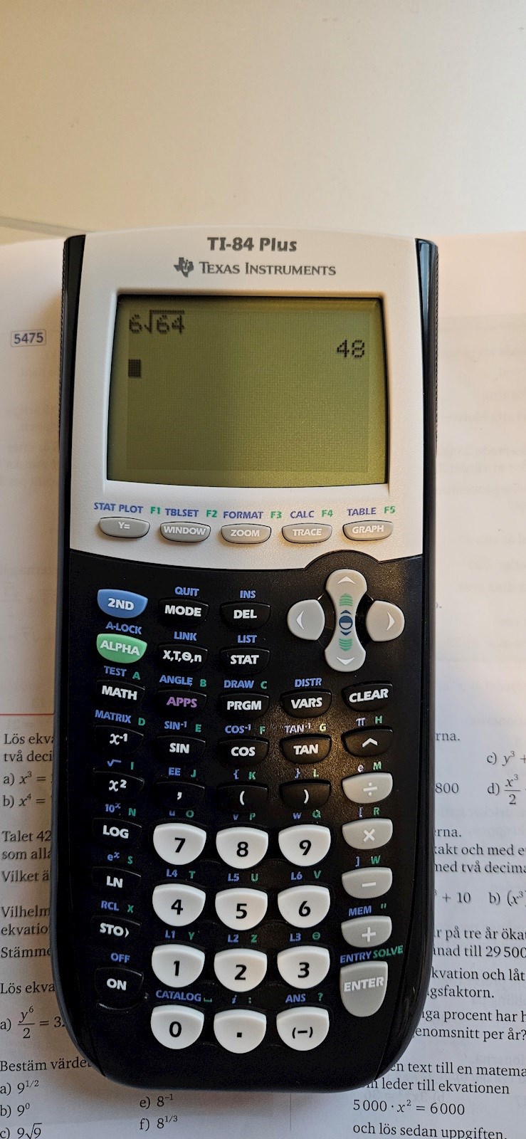 Den här knappen. På a) skriver du antingen alternativt på miniräknaren.