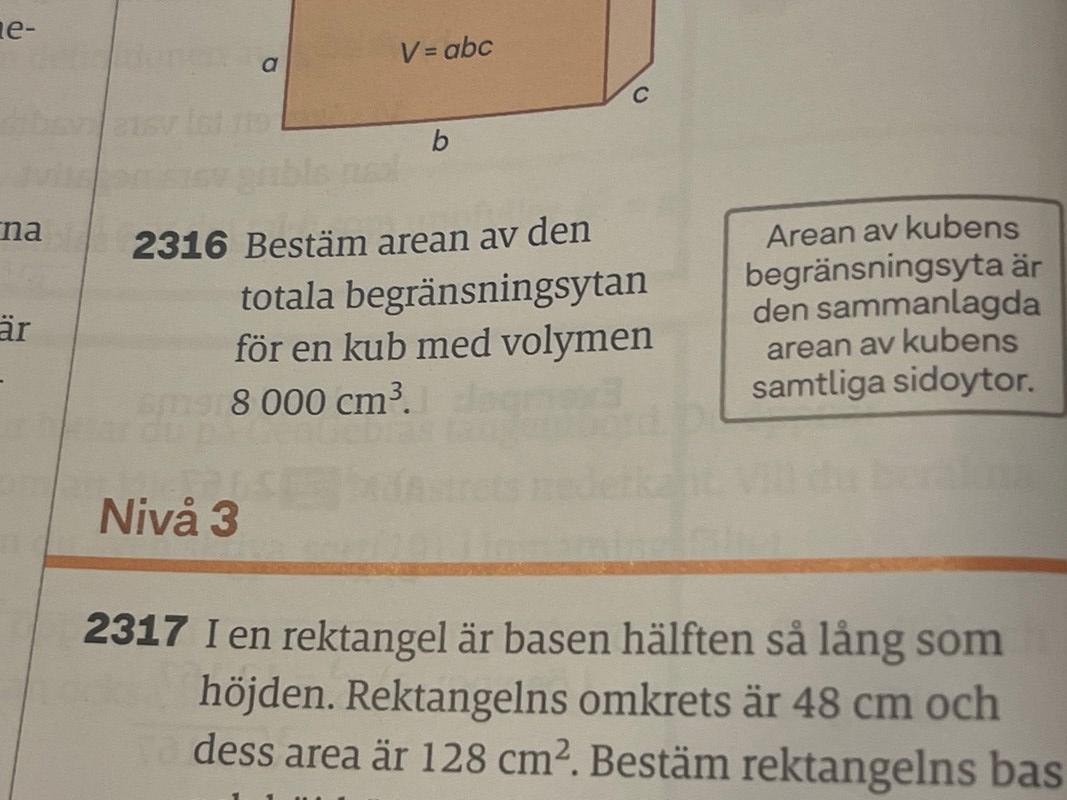 Bestäm area av kub given en volym