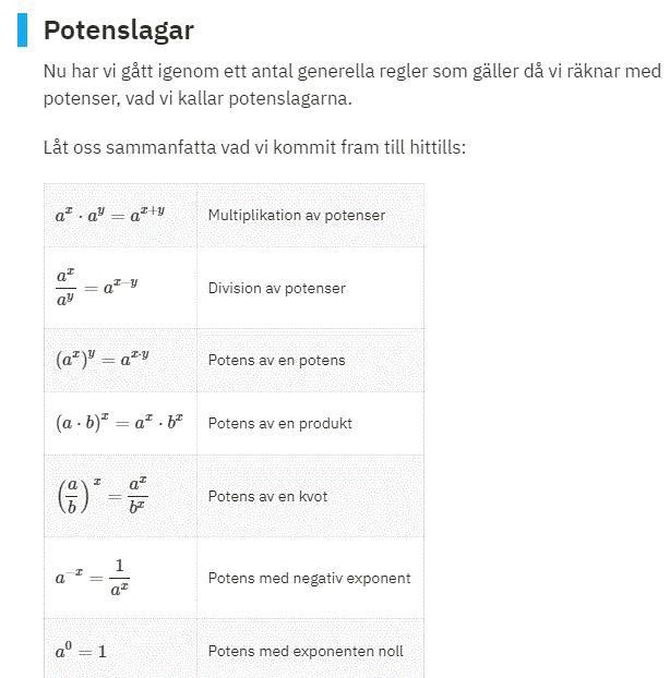 Kanske tänker du på potenslagarna, se nedan. Ingår i Matte 1