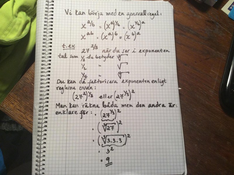 I boken är detta ett exempel: Beräkna 64^2/3 utan miniräknare