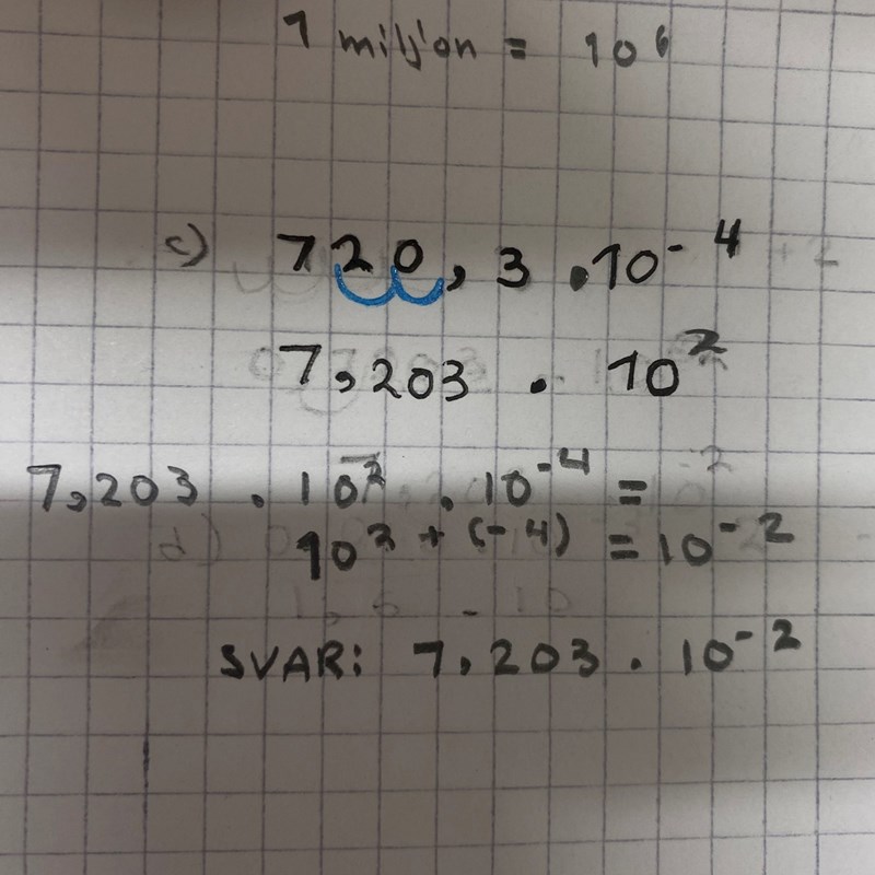 uppgiften handlar om att skriva 720,3 x 10^-4