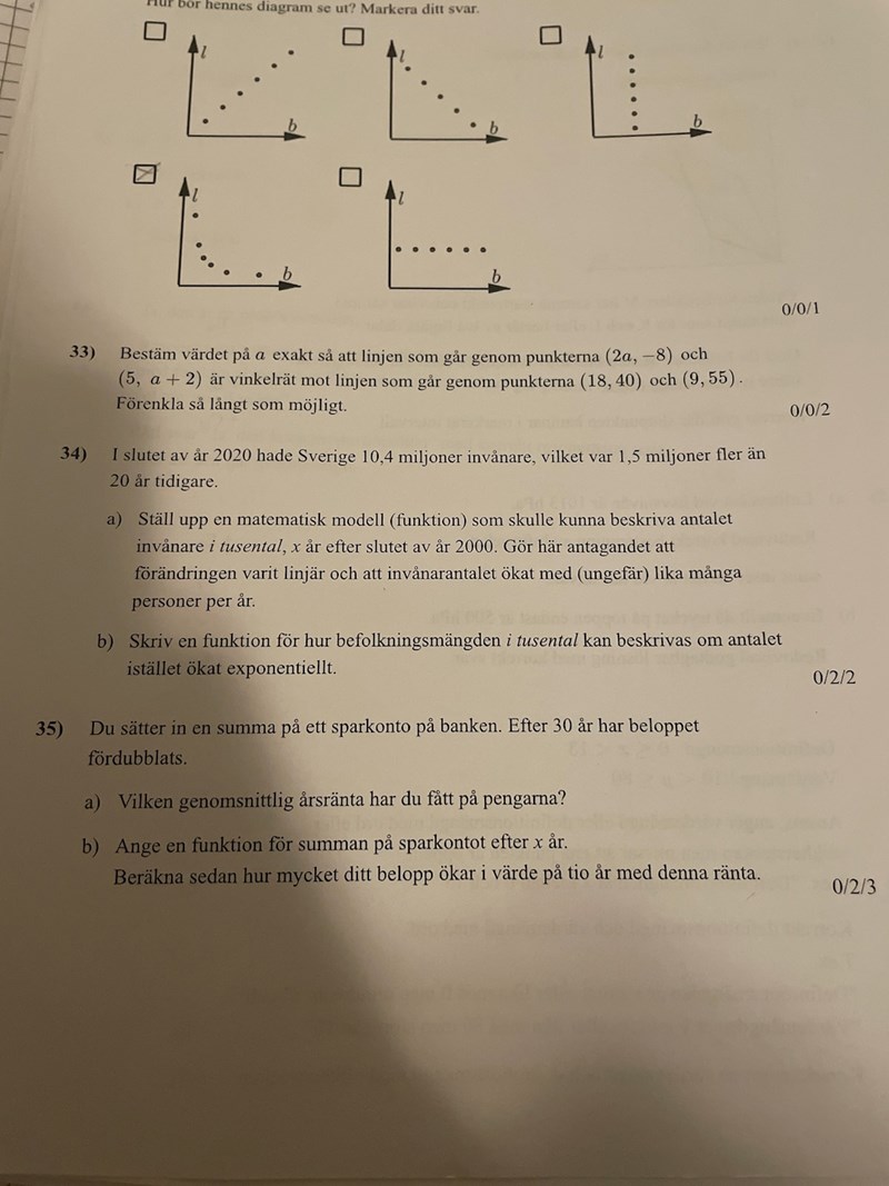 behöver hjälp med uppgift 35. På uppgift a) trodde jag att man skulle räkna det som en potensfuktion för jag vet ju inte förändringsfaktorn. Förstod dock inte hur jag skulle göra för en generell lösning på uppgiften, då man för alla poäng för det på prov.