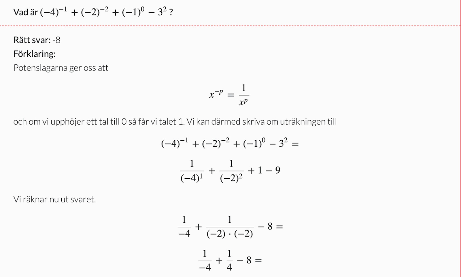 eddberlu skrev:När det är (-a)^2 då blir det positivt, ingen parentes, dvs -a^2 blir det alltså... Negativt?