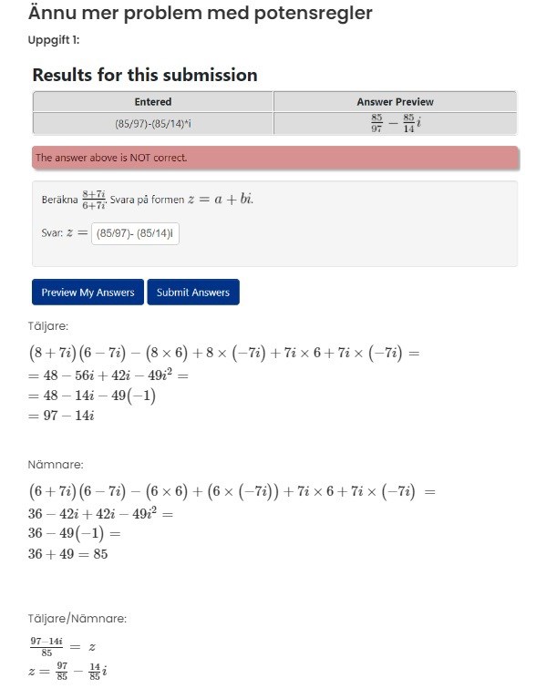 Bara så vi överens. Det är inte det svaret du kopierat in i frågan, där det står ”not correct”. Där har du vänt på bråken.