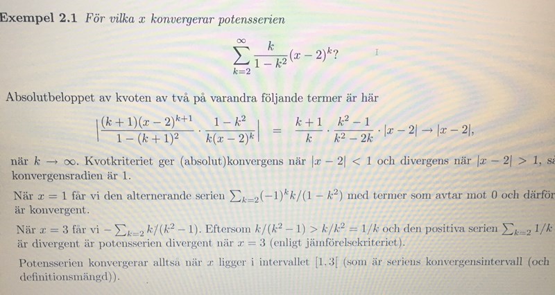 Hej, i denna uppgiften använder vi kvotkriteriet, men jag vet inte vilka operationer som används för att beräkna uttrycket innenför absolutbeloppet