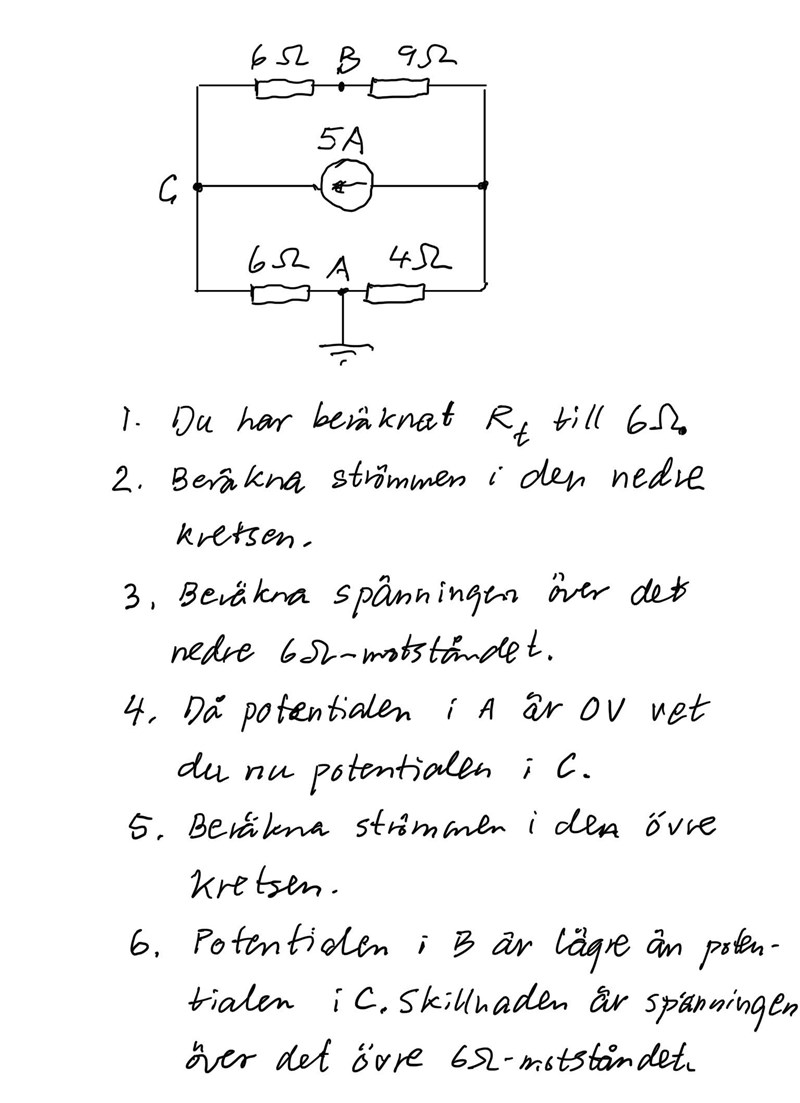 1a) Beräkna spanningen över kretsen (5 ampere, 6 ohm)