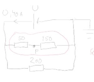 Hjälp! jag vet att 50 + 150 är 200 ohm men hur ska jag ta reda på potentialen i p?