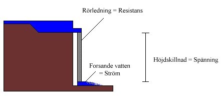 Strömmen rinner ner till lägre potential/potentiell energi.
