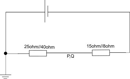 Jag har försökt beräkna strömmen, men då måste jag ha spänningen, och då får jag att potentialen i P och Q måste vara identiska... Men jag vet inte hur stor den "nya" potentialen är!