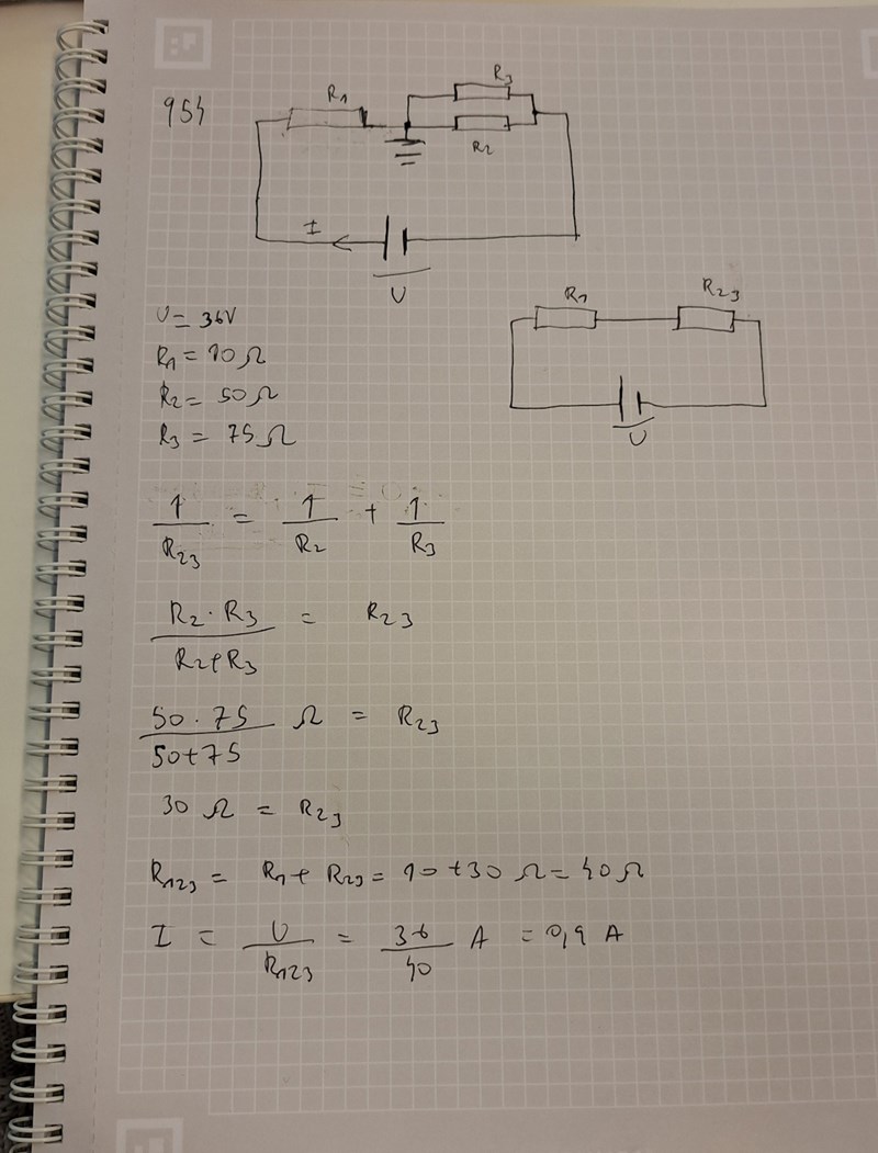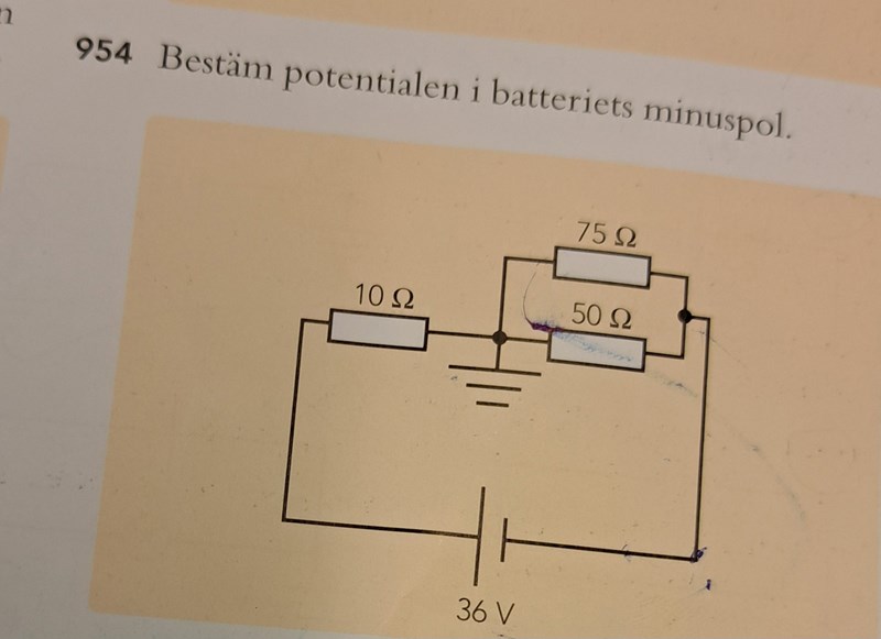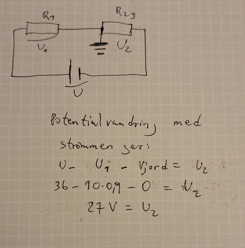 Jag tänkte mig Vjord + R1*I - U = Potentialen på batteriets minuspol.