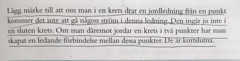 Du kan tänka att du temporärt kan drar en extraledning mellan två jordpunkter. Det förändrar inte dom elektriska egenskaperna i kopplingen, men för den som är mindre erfaren, kan det bli lättare att förstå konsekvensen av två jordpunkter.