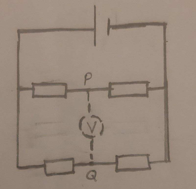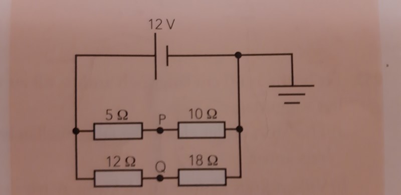 I detta fall finns det ju en resistans på 18 ohm vid punkten Q och en resistans med 10 ohm i punkten P. Eftersom ström vill ha en väg med lägre resistans så borde den ju gå från Q till P.