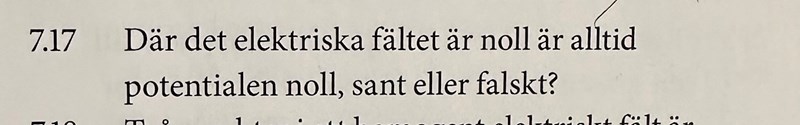 Mrpotatohead skrev:Punkten där det elektriska fältet är noll behöver ju inte vara jordad.