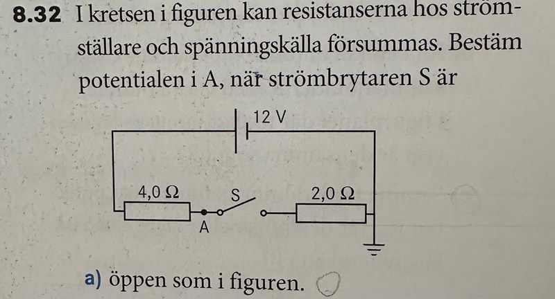I det är fallet torde de mena relativt jord, då är potentialen i A = 12 V när S är öppen