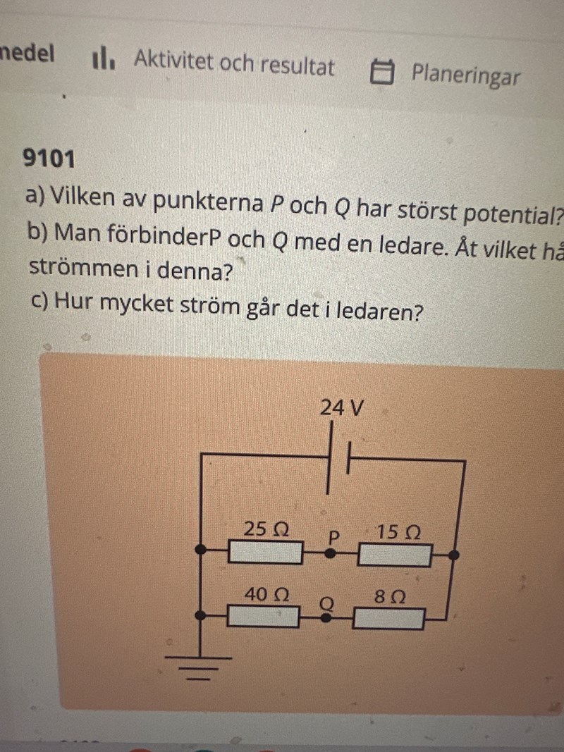 potentialen i p = -24*25/(25+15), och för q gäller -25*40/(40+8)