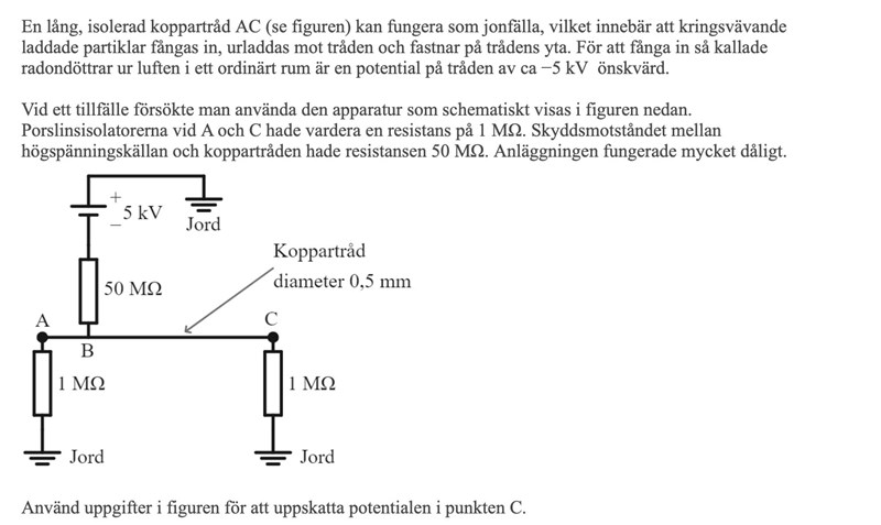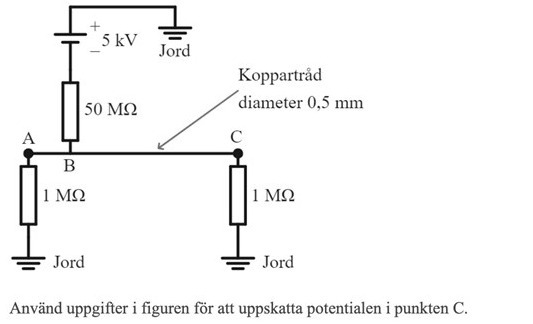 Spänningen över resistorn blir . Då Den är jordad innan bör väll potentialen öka när strömmen går från jordpunkten genom resistorn? Och potentialen konsekvent bli 49.5?