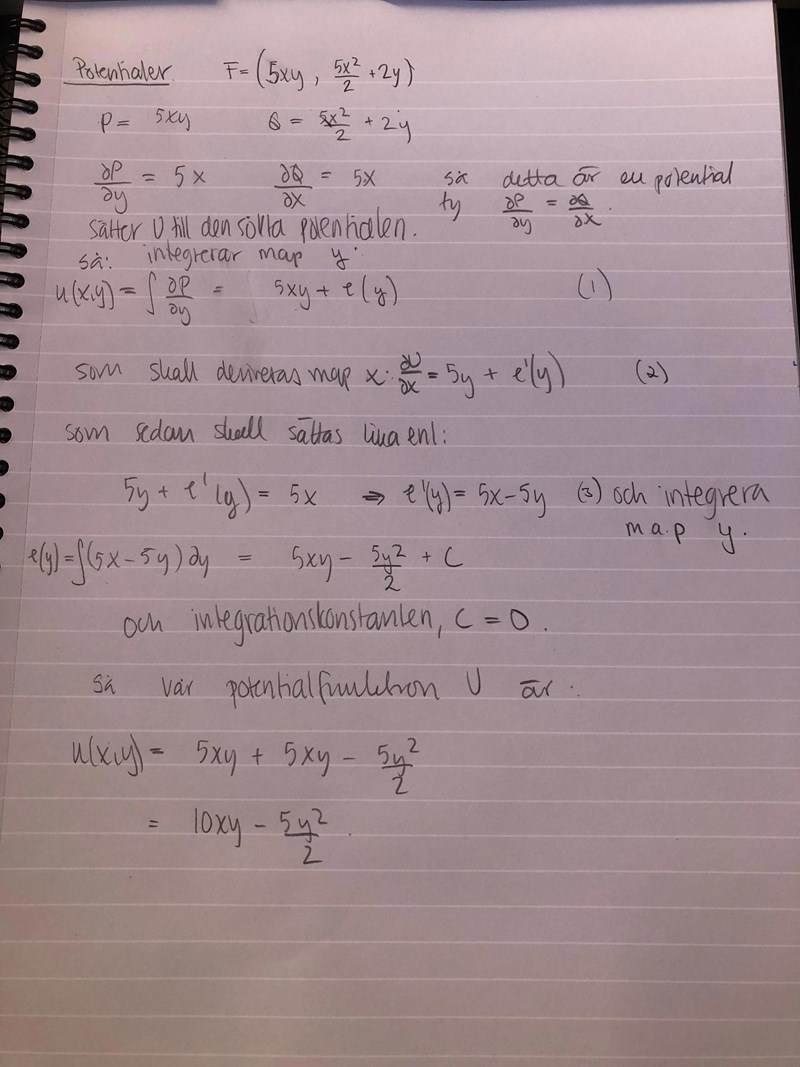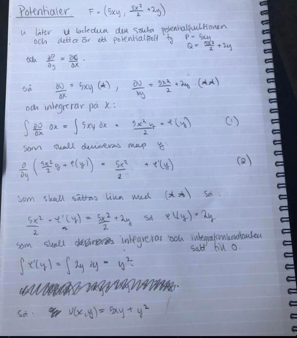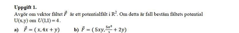 Om verkligen är ett potentialfält så är dess associerade potentialer funktionerna