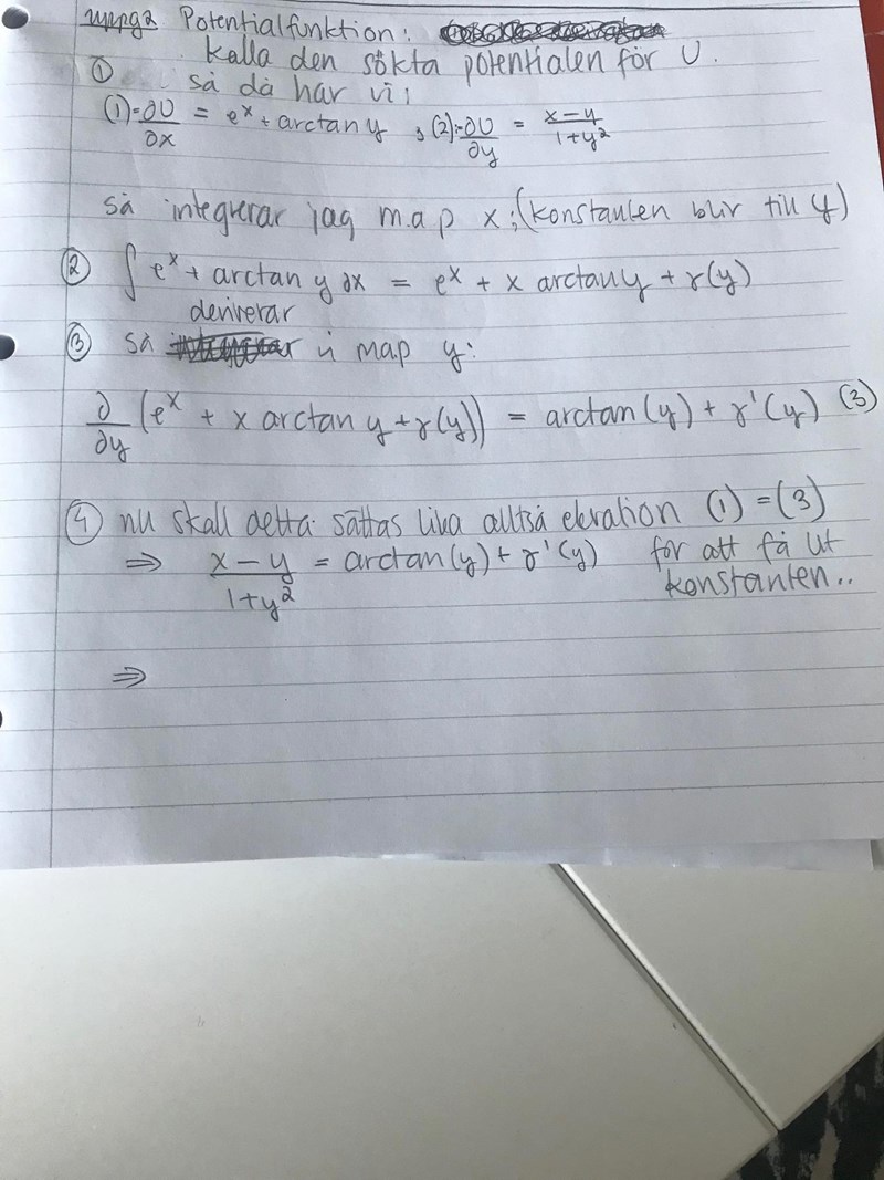 SeriousCephalopod skrev:I steg 3 så skriver du att du deriverar med avseende på y men sedan så deriverar du xarctan(y)-termen med avseende på x.
