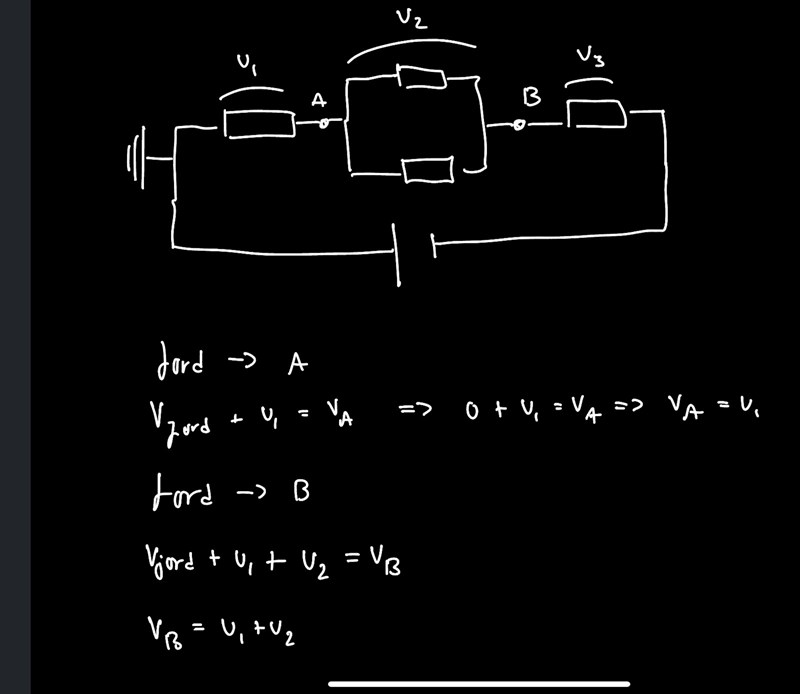 Är osäker på potentialvandring. Hur får jag så Vb enbart visar spänning över U2 ?