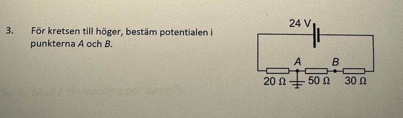 Man ser att siffrorna är snälla, att U2 = U1+U3. Då måste U2 ta halva spänningen och de andra två resten.