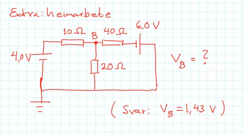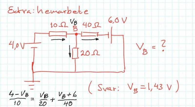 Sen behöver du också Kirchhoffs strömlag också för att lösa uppgiften.