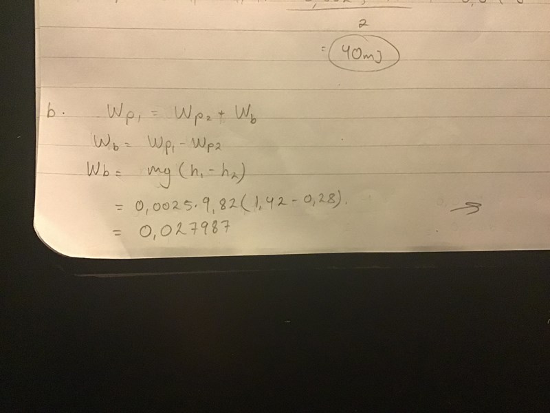 Som jag tolkar din uträkning i b) så har du glömt rörelseenergin?