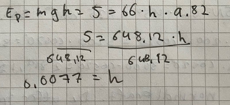 b) Christian tar sats och dyker. Hur högt över vattnet är han när den potentiella energin är 5,0kJ?