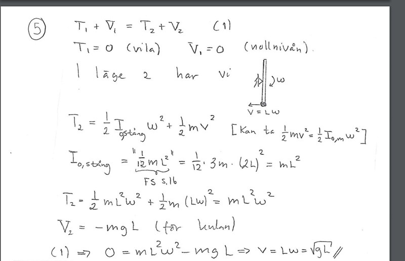 V2=  -mgL+( -3mgL) = -mgl- 3mgl = -4mgl. ( så har jag skrivit , men det ger fel svar)