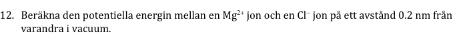 Det beror på vad du vill/ska svara i. Det som du kommit fram till där är potentiella energin i Joule mellan två enskilda joner. För att få det per mol behöver du multiplicera med Avogadros konstant (6,022*1023, hur många partiklar det finns i ett mol partiklar).
