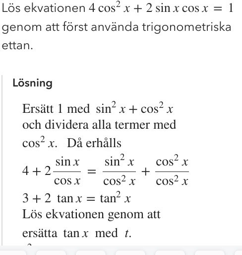När du dividerar med cos2x, innebär det att cos2(x)0\cos^2{(x)}\neq0, eftersom att du inte får dividera med noll. Men det är inget uppgiften kräver, och därför måste du undersöka om lösningarna till cos2(x)=0\cos^2{(x)}=0 skulle kunna lösa ekvationen.