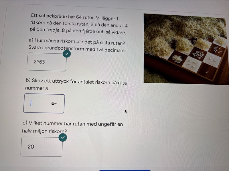 Hej jag håller på med en uppgift nu som jag inte får till fråga b, jag skriver 2^n-1 men det blir ändå fel.