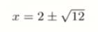 Jag skulle ha svarat 2±232\pm2\sqrt{3} eftersom det är en "enklare" form än 2±122\pm\sqrt{12}.