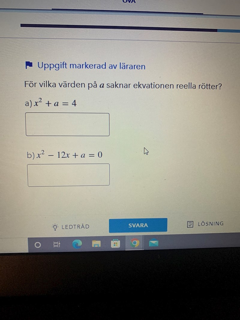 Istället ska du hitta de värden på a för vilka ekvationen saknar reella lösningar.