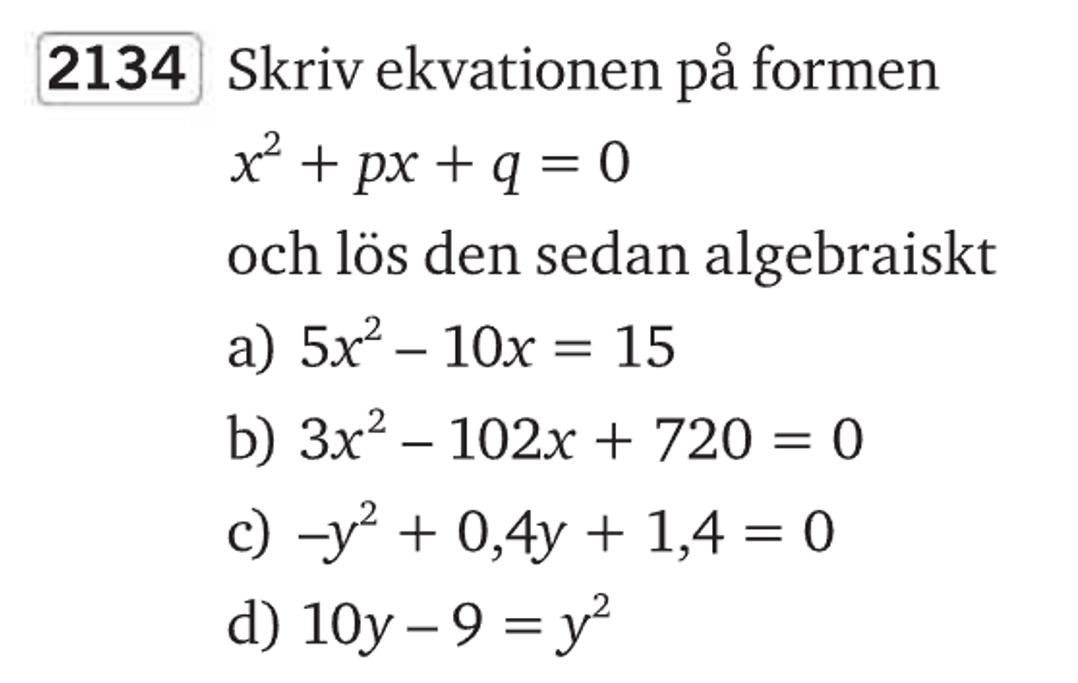 Jag undrade vad jag ska göra för att kunna använda pq-formeln för uppgift c)
