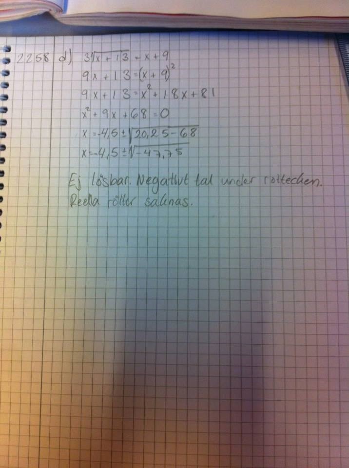 Men nu fastnar jag på en till uppgift... Frustrerande. Förstår inte förklaringen i facit heller. Jag ska lösa rotuttrycket först tydligen? Här har ni mitt misslyckade försök.