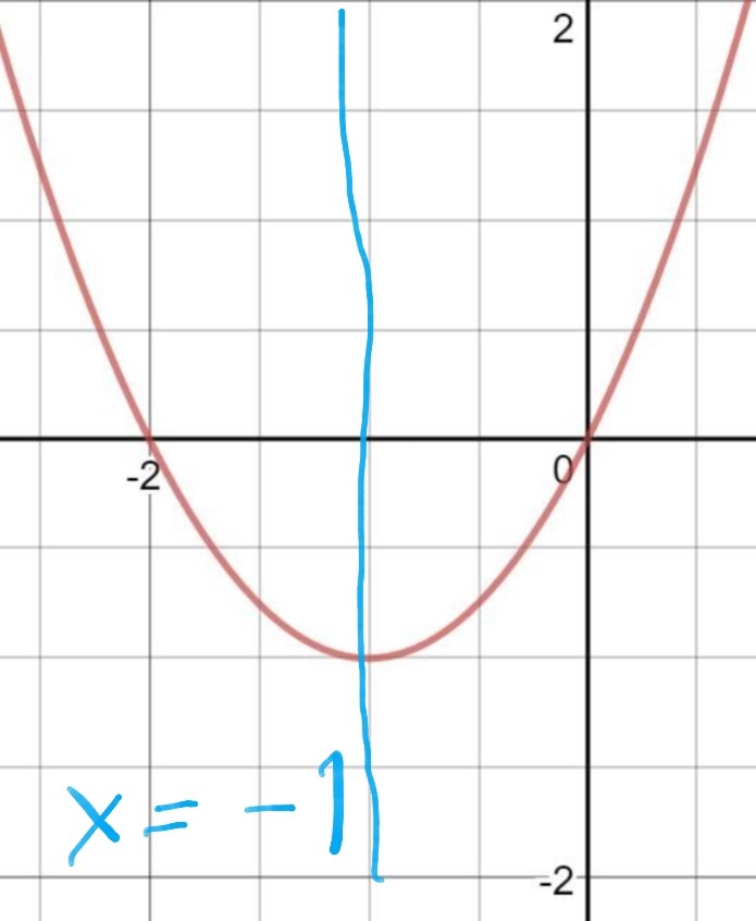 I MattePapputs exempel är symmetrlinjen den vertikala linjen x = 1 (blåmarkerad).