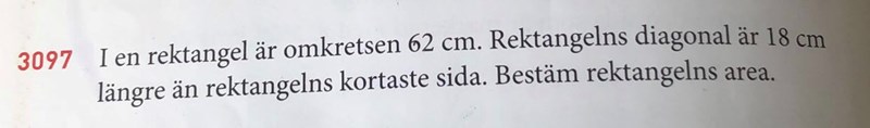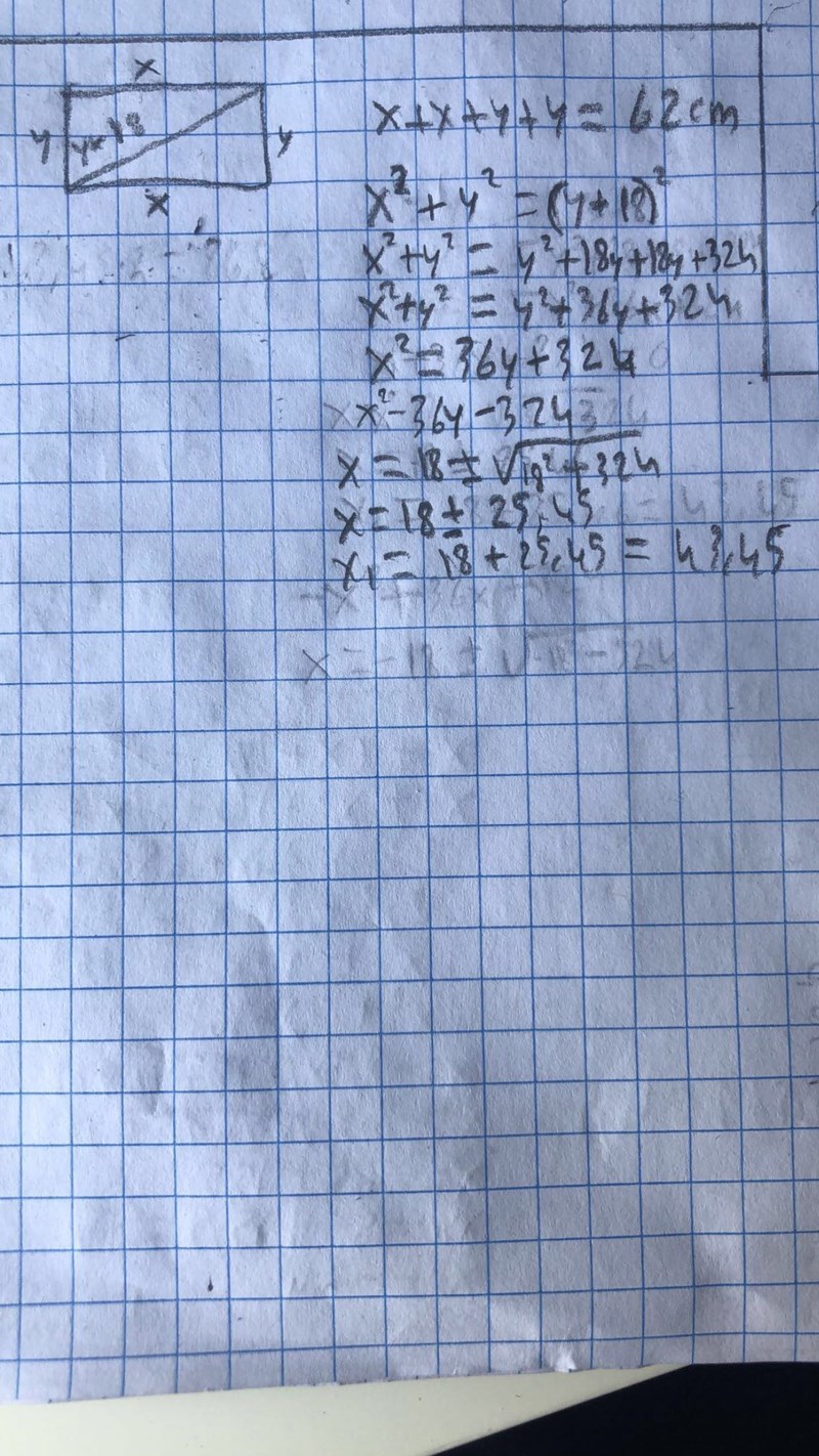 Det bli väl x^2+y^2 = (y+18)^2? Sen blir det väl pqformeln?